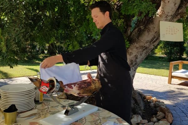 Den uddannede skinkeskærer, cortador, Gonzalo Pérez Martínez har skabt sin forretning 'Jamonero on tour' for at sikre, at ikke ét eneste lille gram af den populære lufttørrede delikatesse går til spild.