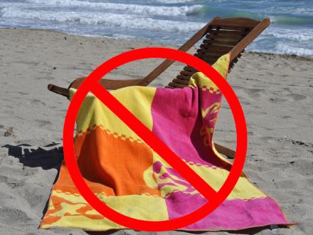 30 euro koster det i bøde, hvis du lister ned og stiller strandstolen og planter parasollen tidligt om morgenen, og så først kommer tilbage senere.