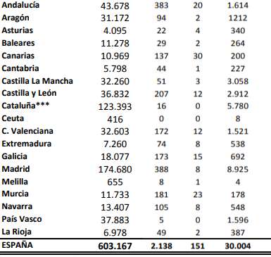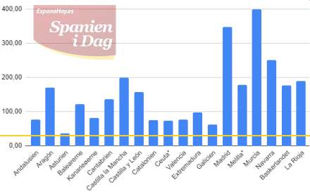 Både Andalusien, Valencia og Galicien viser stagnation. Kanarieøerne falder sammen med Aragón, Ceuta og Baskerlandet.