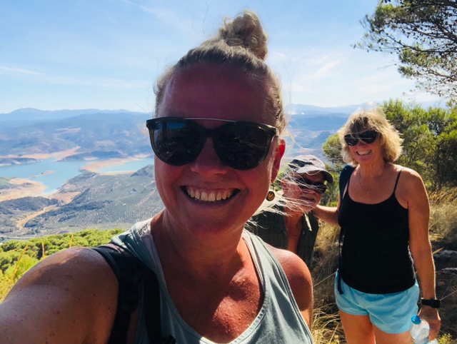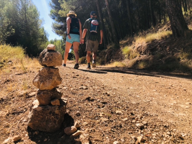 Vi er alle tre ret begejstrede for den spanske natur og mindst lige så begejstrede for en kølig øl, efter vi igen har udfordret tyngdeloven og kravlet op på et bjerg.