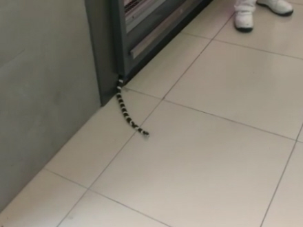 På videoen kan man tydeligt se en californisk kongesnog, der stikker ud af døren på et køleskab i supermarkedet: