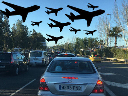FLY & TRAFIK: 17.200 fly og 4,4 millioner ture på vejene. Denne første weekend i juli bliver der igen sat fut i rejseriet i Spanien, så der bliver godt travlt i både lufthavne og på veje.