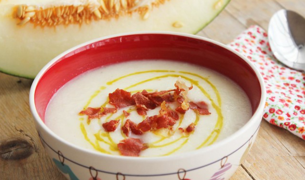 Sopa fría de melón con jamón crujiente