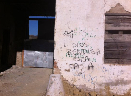 På metallet er der som så mange andre steder blevet sprayet grafitti af nogle af de mange besøgende. På døren står der Los Muertos – De døde.