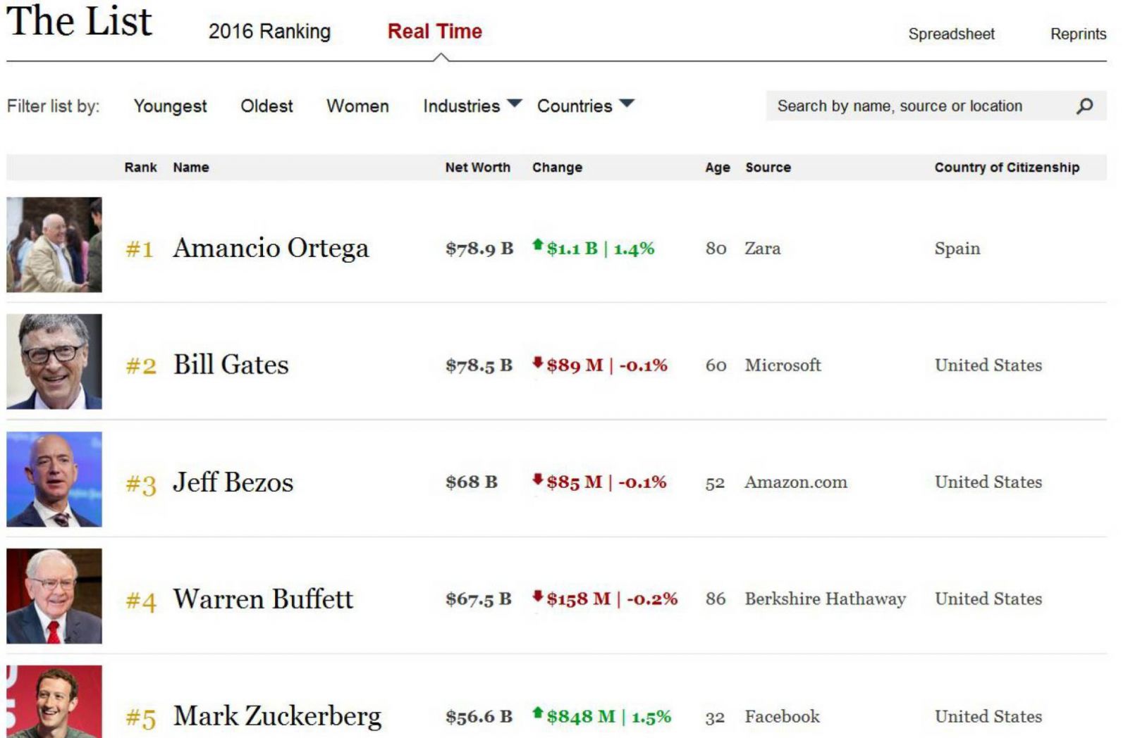 På listen over verdens rigeste mænd figurerer også grundlæggeren af Amazon, Jeff Bezos, investoren Warren Buffett og facebook-grundlægger Mark Zuckerberg.
