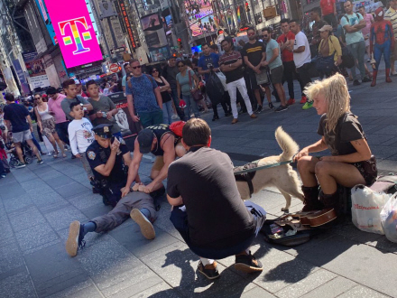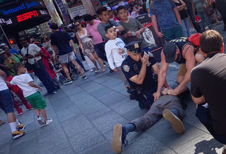 Overfaldet skete midt på det centrale og verdenskendte Times Square. Den spanske betjent var på ferie i USA og kom gående hen over pladsen. Han observerede, hvordan den amerikanske kollega henvendte sig til en mand, der gik rundt med en stor hund uden snor og generede andre på pladsen.