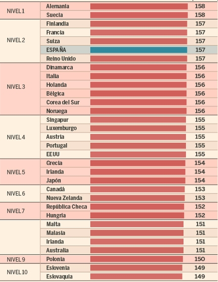 I år er Spanien rykket op på niveau to med spaniernes mulighed for at rejse til 157 lande. Danskere ligger et niveau lavere med mulighed for at rejse til 156 lande.