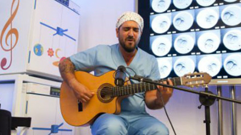 Sangeren Antonio Orozco, der også er kendt fra den spanske udgave af sangkonkurrencen The Voice, har givet koncert på en fertilitetsklinik i denne uge.