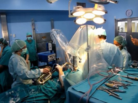 Han havde kun fået smertestillende medicin, så mens operationen var i gang spillede han beroligende toner.