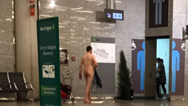 Bagage, tøj og sko kunne han tilsyneladende heller ikke overskue at slæbe rundt på, for både passagerer og personale måtte konstatere, at han gik rundt i lufthavnen lige så nøgen, som den dag han blev født.