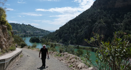 Vi valgte indgang syd ved Álora. Det er der, hvor der tidligere var en campingplads med små hytter, men den er i dag blevet lukket. Albergue Camping er blevet lukket af myndighederne, netop som der var udsigt til en ren guldgrube med åbningen af Kongestien.