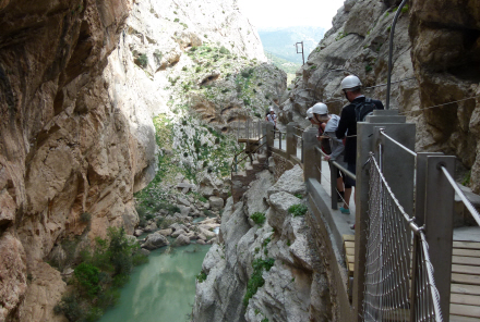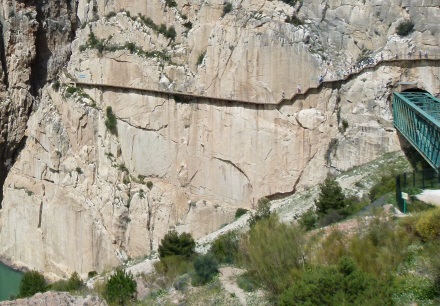 Selve Caminito del Rey foregår sådan set i to afdelinger med den karakteristiske gangbro banket ind i klippevæggen; i starten og i slutningen af de 2,9 kilometer. I midten af de to er der en strækning, hvor du går gennem skoven i et mere åbent områder.