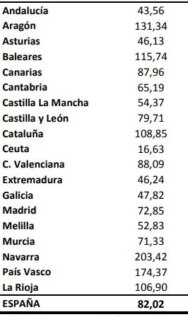 Den generelle incidens for hele Spanien pr. 100.000 indbyggere