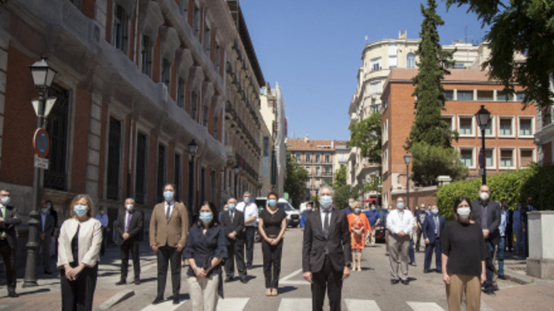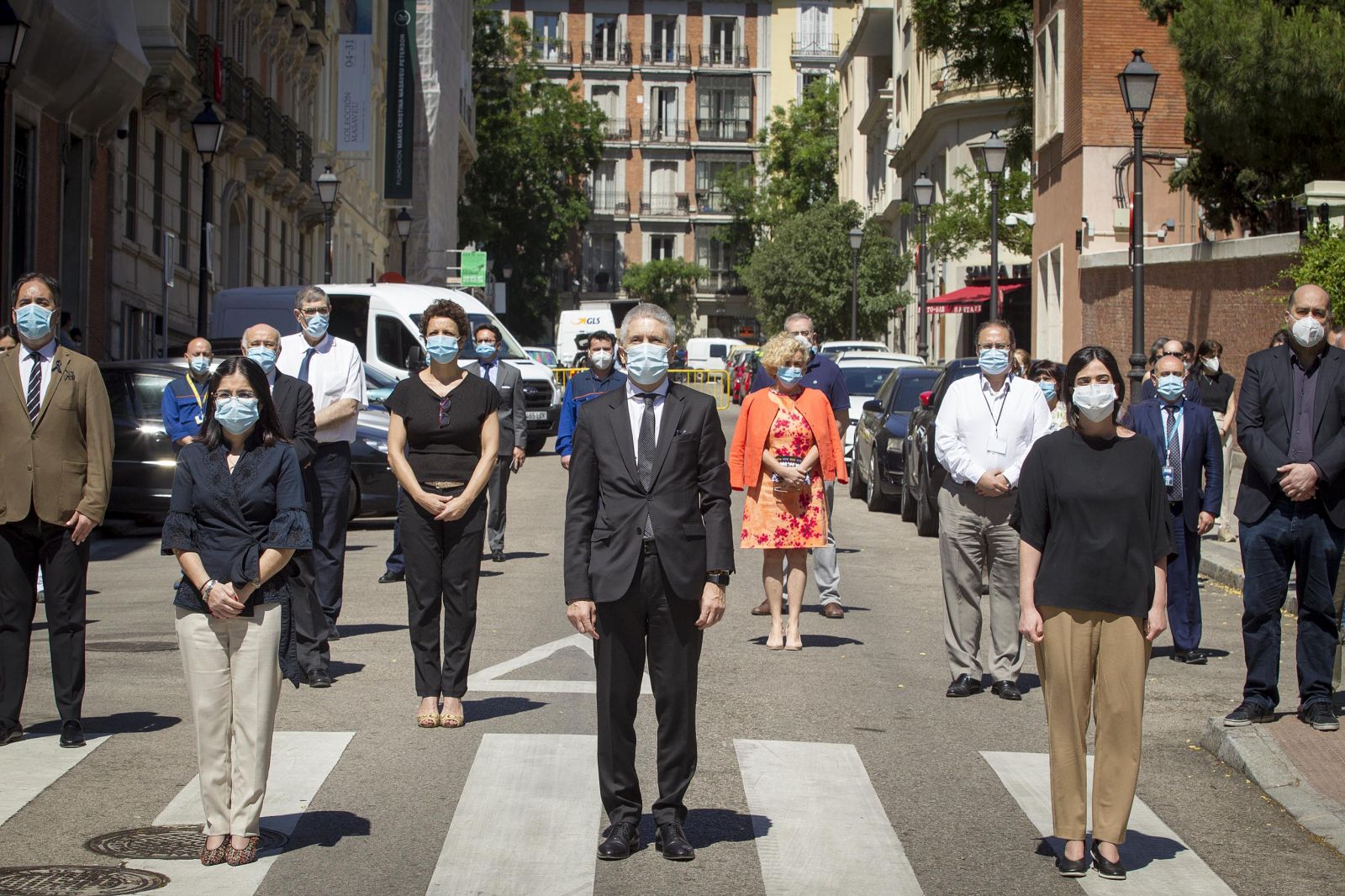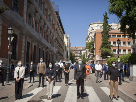 Indenrigsministeren, Fernando Grande-Marlaska, og ministeren for territoriel politik og offentlig funktion, Carolina Darias, afholdt i går også et minuts stilhed sammen med højtstående embedsmænd og medarbejdere fra begge ministerier.