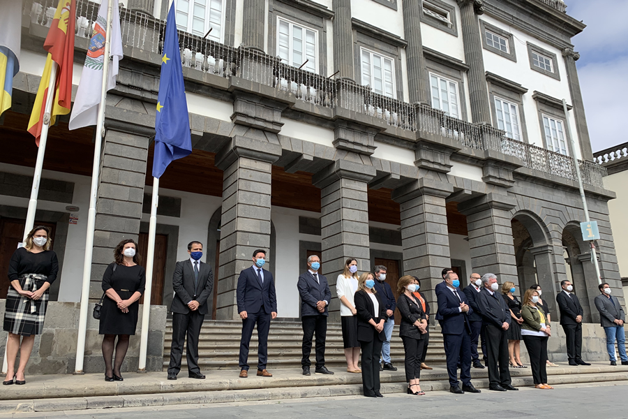 Las Palmas de Gran Canaria tyvstartede endnu mere, da man afholdt ét minuts stilhed til minde om ofrene i “en inderlig hyldest” allerede mandag foran rådhuset på Plaza Santa Ana.