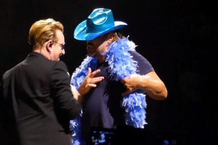 U2 udsendte senere et tweet med et billede af de to med billedteksten: "Mystiske gæster i aften i Barcelona”: