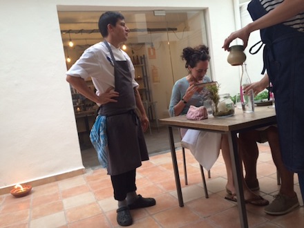 - Vi prøver at være etiske, da jeg synes, man har et ansvar som kok, siger Marco, da han kommer ud og præsenterer en af retterne.
