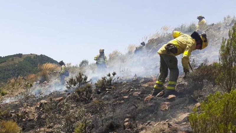 Brandvarm Levante-vind og ekstremt lav luftfugtighed reaktiverer såkaldte ‘hot sports’ i Pujerra-branden i Sierra Bermeja.