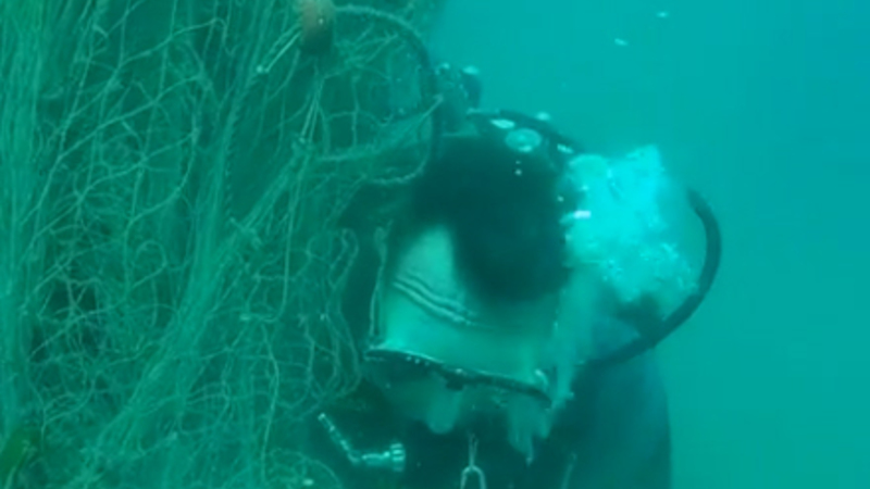 Deres mission var at fjerne et 30-meter langt fiskegarn, som var blevet efterladt og nu var til fare for marinelivet.