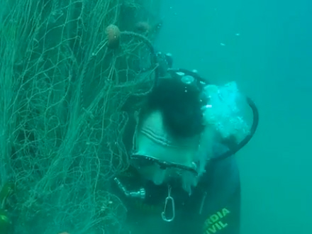 VIDEO: Guardia Civil fjerner et kæmpe fiskenet, som truede marinelivet i Almería. Og det blev særligt én lille fætter glad for.