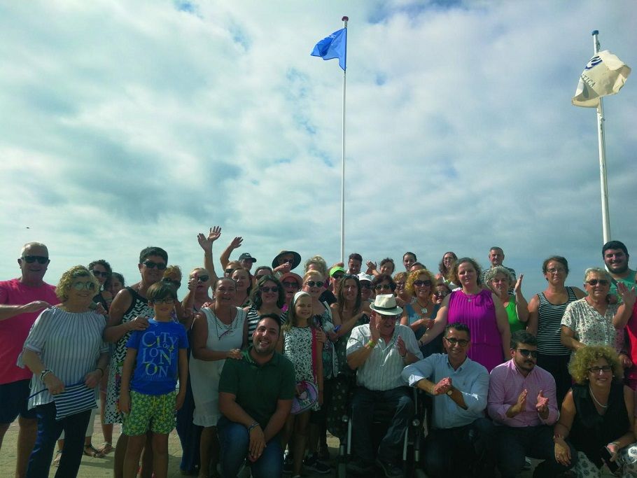 Borgmester Miguel Molina var ret stolt, da han var med til at hejse flaget, der viser, at stranden er handicapvenlig.