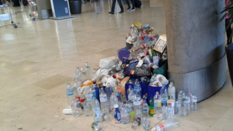 FLY & TRAFIK: Rengøringspersonale har strejket i snart en uge, og affaldet hober sig op. Personalet strejker i protest mod arbejdsvilkår, løn og manglende jobsikkerhed.