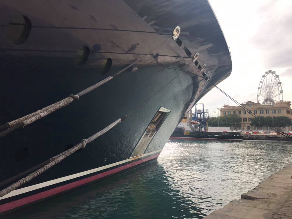 Superyacht lagde onsdag til kaj i Málaga Havn. Her skal den ligge og hygge sig den næste måned.