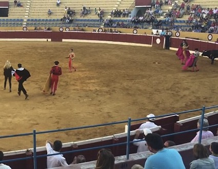 Søndag fik tilskuerne i tyrefægterarenaen i Marbella, Málaga, sig et ekstrashow, da en pornostjerne fra Sverige sprang ned til tyren.