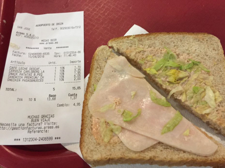 Det er generelt dyrt at købe mad i lufthavne, men man forventer trods alt at få lidt for pengene. Det kan Ibiza ikke prale med.
