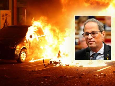 - Vi tager afstand fra vold og ønsker ikke at ballademagere skal sætte vores projekt med løsrivelse i et dårligt lys, sagde Torra blandt andet.