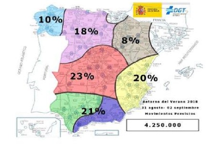 Trafikdirektoratet, DGT, advarer om, at den tætte trafik starter i dag klokken 15:00 og står på frem til midnat søndag den 2. september. DGT anslår, at der bliver gennemført 4,2 millioner ture i løbet af weekenden.
