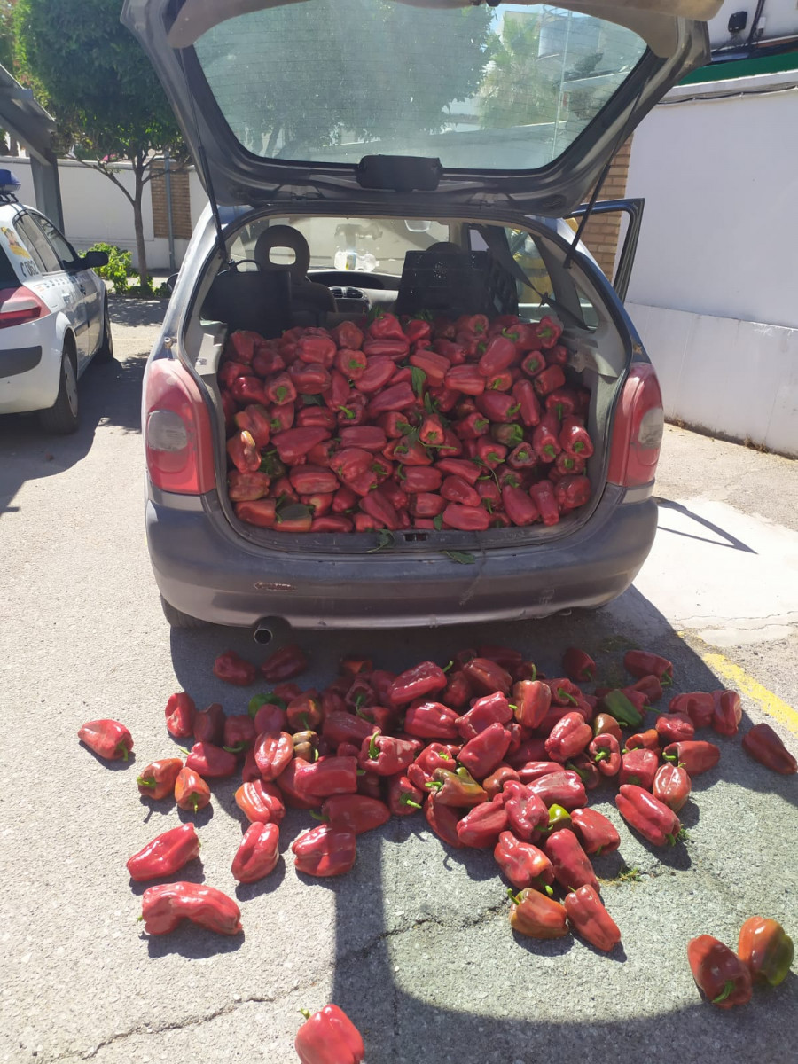 Efter at have identificeret og beslaglagt de mange peberfrugter, fik betjentene bekræftet, at der var tale nøjagtigt den samme person, der blev anholdt i juli for tyveri af tre ton druer fra gårde i Los Palacios og Villafranca.