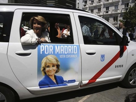 Taxachauffører i Madrid er godt trætte af den igangværende valgkamp. De er nemlig blevet dænget til med reklameplakater for den konservative spidskandidat til borgmesterposten i Madrid, Esperanza Aquirre.