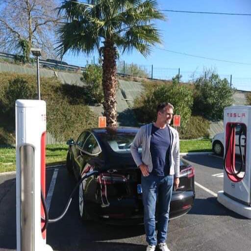 Tesla har en App, der viser vej til nærmest ladestation i hele Europa, og den anbefaler også overnatning i nærheden af ladestationer. Og så var det ellers bare af sted.