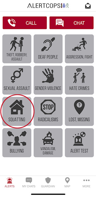 Knappen giver enhver bruger mulighed for straks at advare de statslige sikkerhedsstyrker, hvis en ejendom bliver ulovligt indtaget.