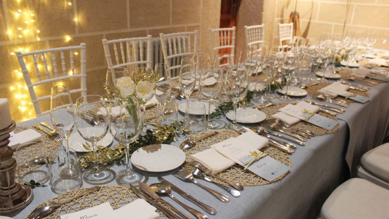 Tomme stole, tallerkener og glas
