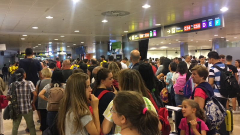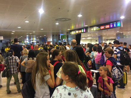 En af de politifolk, der arbejder i kontrollen, sagde allerede tirsdag, at lufthavnsmyndigheden Aena ikke har udvidet adgangen til security, som er meget smal, så der er simpelthen ikke plads nok til at regulere strømmen af passagerer.