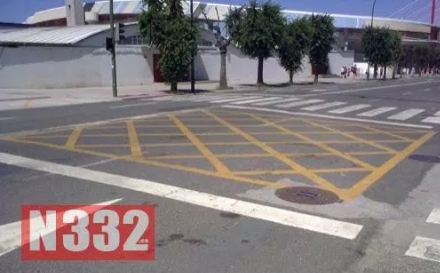 De gule krydsmarkeringer indikerer, at man ikke må hverken stoppe eller blokere de gule felter