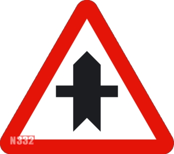 Dette advarselsskilt om det forestående vejkryds viser, at du har vigepligt for køretøjer, der kommer fra din højre side