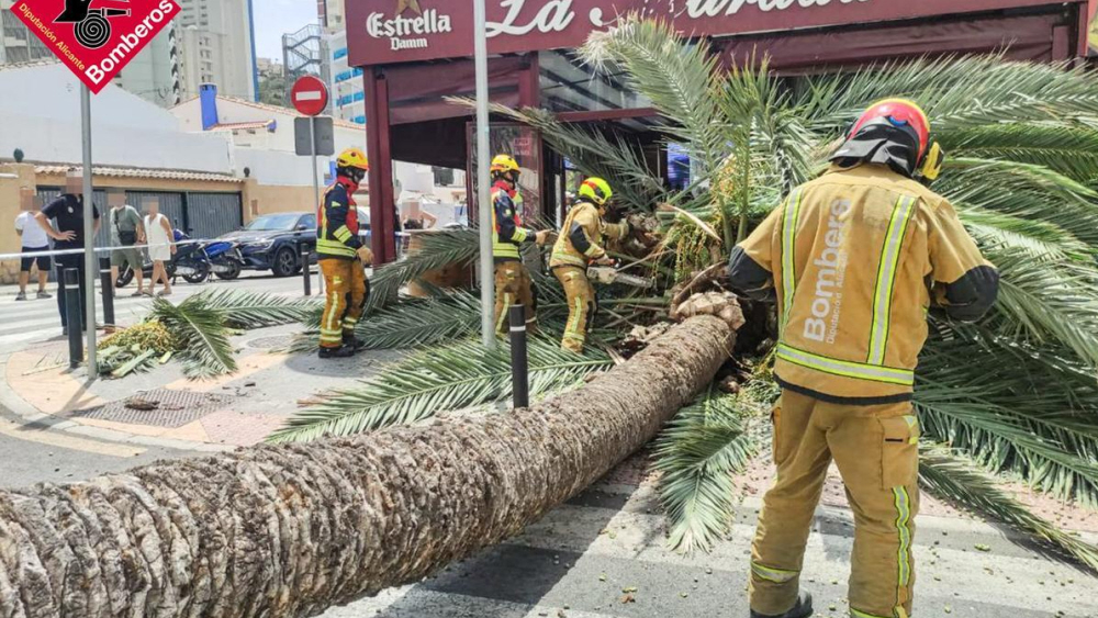 Stor forskrækkelse og tre kom til skade, da et stort palmetræ faldt ned på gaden midt i et turistområde.