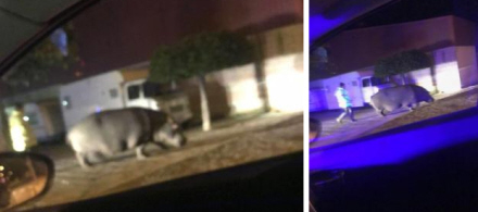 Klokken godt 21:00 mandag kom der nemlig et opkald om en flodhest, der spadserede rundt i den lille by La Garovilla i Badajoz.