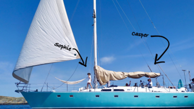 Onsdag i sidste uge stævnede Casper, Sophie og gasterne ud på den 58-fods sejlbåd ‘Hvalodea’ fra franske Camaret-sur-Mer med kursen mod A Coruña i Nordspanien.