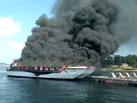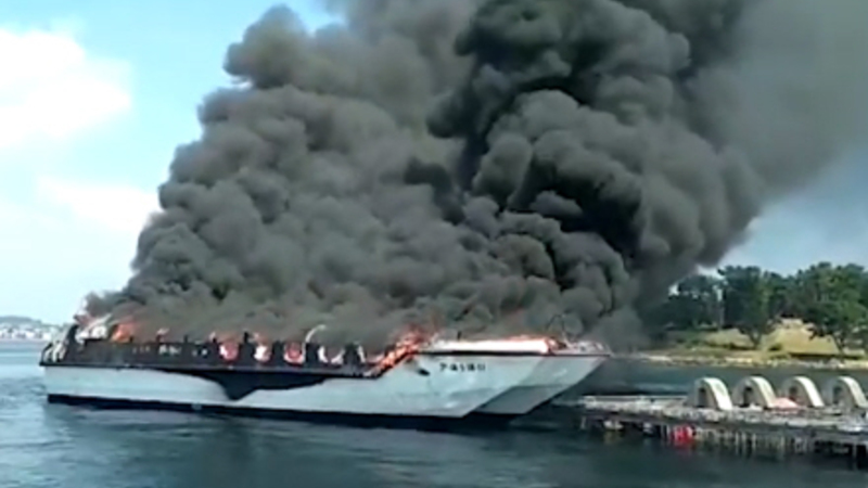 VIDEO: Passagerbåd brød i brand, og pludselig gik det hele hurtigt. I alt er 38 personer forbrændt - heraf fem alvorligt.