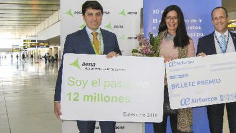 Eva Tendero Corredor (foto, red.) blev passager nummer tolv millioner, da hun hoppede på et Air Europa-fly til Madrid.