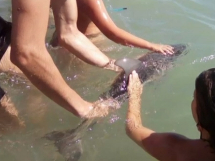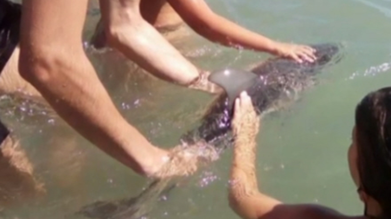 Strandgæster leger delfinbaby ihjel