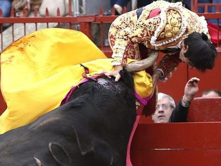 Perera blev stanget af hans første tyr den dag, som bogstaveligt talt overtog arenaen og smed ham ud. Han røg direkte på operationsbordet i tyrefægterarenaens skadestue, hvor han modtog akut kirurgi for at få lukket det åbne sår i maven.