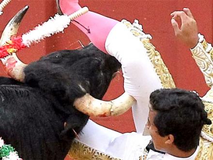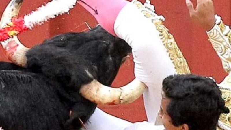 Tyrefægteren blev spiddet i højre lår efter at være kommet i klemme med en af spyddene, som anvendes til at angribe tyren med i halsen eller skulderen.