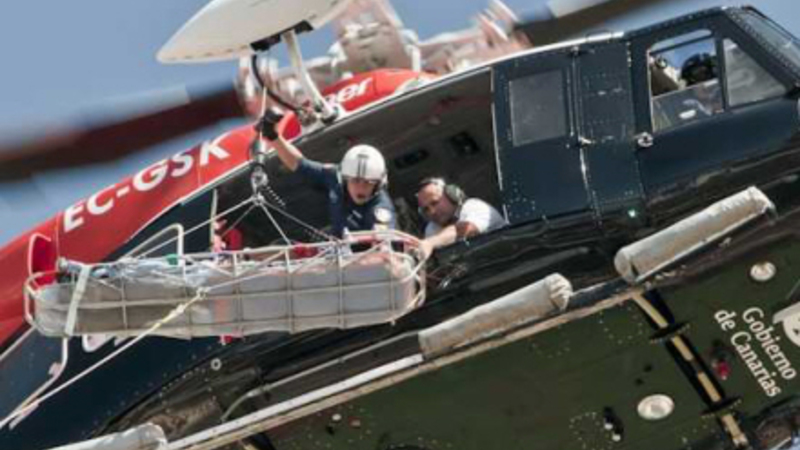 Redderne konstaterede, at manden havde moderat hoftetraume, så han blev fløjet med SUC-helikopteren til Universitetshospitalet Nuestra Señora de la Candelaria.
