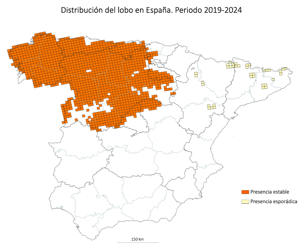 I 2024 blev der for første gang i årtier registreret en ynglende flok i Extremadura. Aragón og Catalonien har stadig ingen fastboende flokke, kun enkelte ulve i spredt forekomst.
