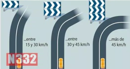 Er der ét skilt, betyder det, at føreren skal reducere sin fart med mellem 15 og 30 km/h i forhold til den lovlige hastighed, som føreren nærmer sig kurven med.